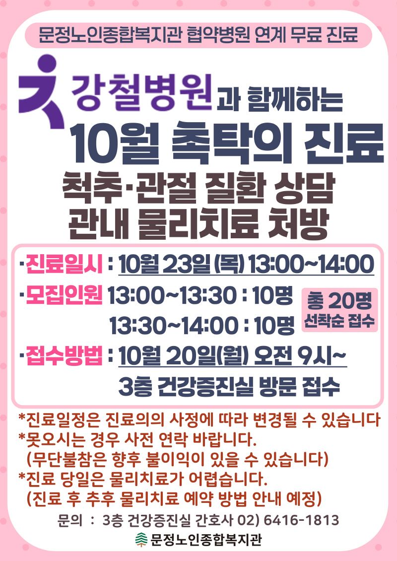 [촉탁의 진료 안내] 10월 촉탁의진료(무료) 참여자 모집