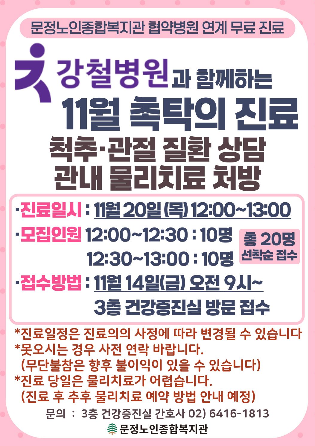 [촉탁의 진료 안내] 11월 촉탁의 진료(무료) 참여자 모집